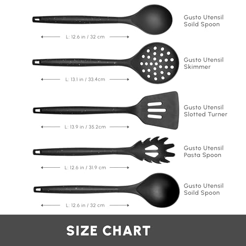 - Culinary Arsenal: Our set boasts a remarkable array of kitchen essentials, including a Chef's Knife (20cm, 7.8"), Utility Knife (20cm, 7.8"), Bread Knife (20cm, 7.8"), Carving Knife (13cm, 5.1"), Paring Knife (9cm, 3.5"), and an array of versatile utensils like Serving Spoon, Skimmer, Pasta Spoon, Slotted Turner, Ladle, Knife Block, and Chopping Board.