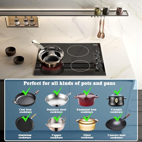 - MODERN & STYLISH DESIGN – Electronic Knob Control allow easy setting with 9 power levels and 4 cooking zones. Electric hob surface made of Black Crystal glass is very easy to clean and maintain, beautiful appearance and functional, always making your kitchen tidy.