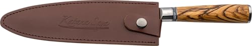 - HANDLE: Katana Saya knives feature stunning handles, crafted from the finest wooden material in either Olive Wood or Pakkawood with a traditional chestnut shape