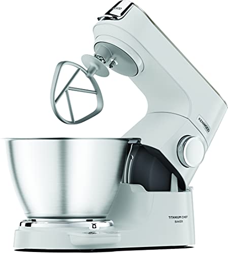 Kenwood Titanium Chef Baker XL, Kitchen Machine with K-Whisk, Stand Mixer with Kneading Hook, Whisk and 5L Bowl, KVC65.001WH, Power 1400W, White & KAX950ME Food Mincer Attachment
