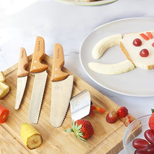 Kibbidea Knife for Kids, Stainless Steel, Wooden Handle, Kids Knife for Chopping Vegetables Fruits Bread and Salad, Child Toddlers Knives for 3, 4, 5, 6 Years Old