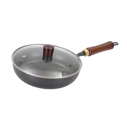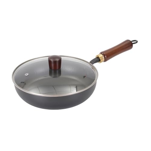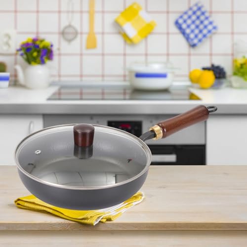 KiBcsLic Iron Wok Stir Fry Pan for Various Stoves Easy to Clean Kitchen Tool, with Lid, Diameter 24cm