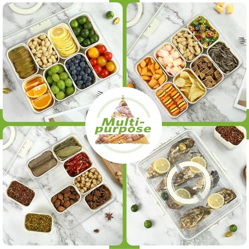 Kids Divided Serving Tray with Lid and Handle Container Set, Portable Snack Bowl Serving Platter with 8 Dishes Snack Platters Organizer for Fruits, Veggie, Nuts, Snacks, Party, Travel & Picnics