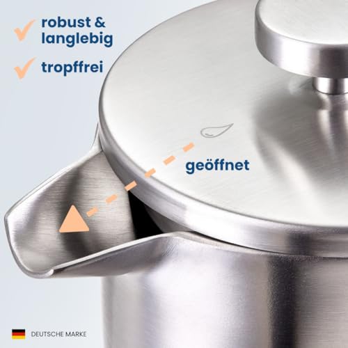 - Pure aromatic coffee enjoyment – the fine-mesh sieve filters out even the smallest residues and thus brings out the full taste – clear, strong, unadulterated coffee.
