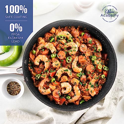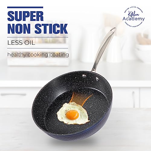 Kitchen Academy 15 Pieces Non-Stick Cookware Set, Nonstick Induction Granite-Coated Pot Pan Set, Includes Lids, Frying and Pans Accessories – Aluminium Hammered Blue