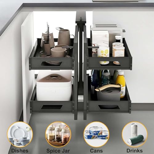 SJDUYD Kitchen Blind Corner Cabinet Pull-Out Organiser with 4 Baskets Shelf Slide Out Cabinet Organizer,Extendable Storage Organiser for Pantry Cabinet 900