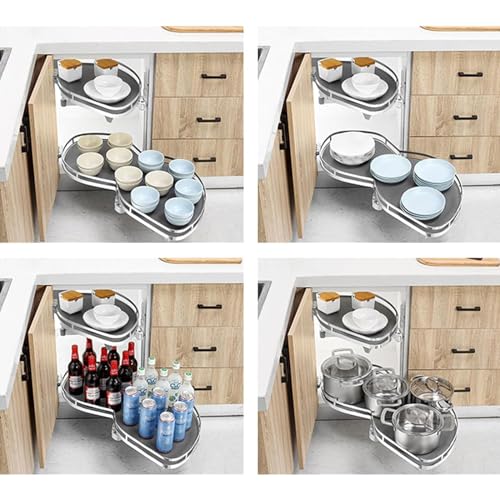 - 【Corner Cupboard】Each tray can be freely rotated 180°-270°, making it easy to place items. And the height of the pallet can be adjusted to suit the size of large and small items.