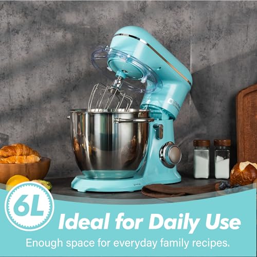 Kitchen in the box Stand Mixer, 6L Electric Food Mixer with 10 Speeds, 1300W Kitchen Appliance for Home Baking, Colorful Design Baking Tool for Bread Dough Cake with Dough Hook, Whisk, Beater (Blue)
