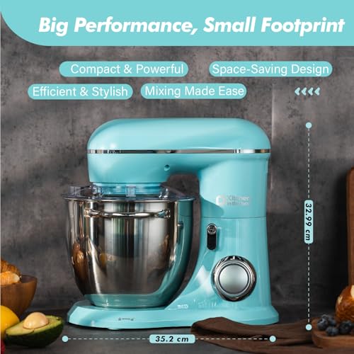 - 1300W Powerful Motor: Equipped with a 1300W pure copper motor, this kitchen food mixer delivers strong, stable performance with reduced noise, which supports long-lasting baking tasks. Built-in overheat protection ensures safety during mixing.