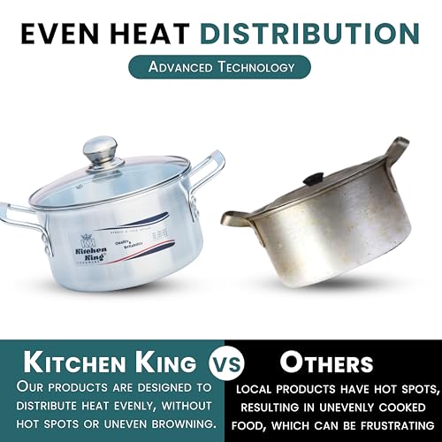 - Craftsmanship Meets Elegance: Experience the unbeatable durability and timeless elegance of Aluminium, elevated with a refined metal Satin finish in the Kingdom Cookware set. Not only does it guarantee even heat distribution for consistent cooking, but it also adds a dash of style to your kitchen decor. Oven-proof and compatible with all hob types, including induction, this Cookware set offers unmatched versatility and flexibility for your culinary creations.