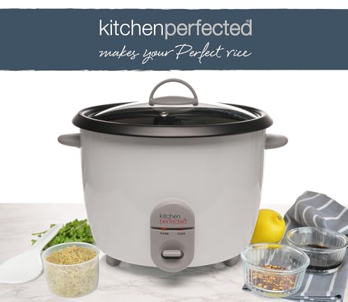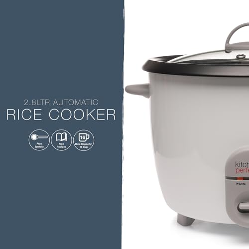 Kitchen Perfected 1000W 2.8Ltr Automatic Rice Cooker – Non Stick/Removable Rice Bowl/Warm & Cook Indicators/Toughened Glass Lid/Measuring Cup/Spatula/Recipes Included – White – E3324