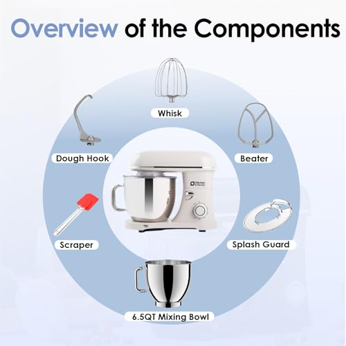 Kitchen Stand Mixer in the Box, 900W Heavy Dough Blender, with 6.5 Quart Mixing Bowl, Tilt Head, Dough Hook, Whisk, Flat Whisk, and Guard