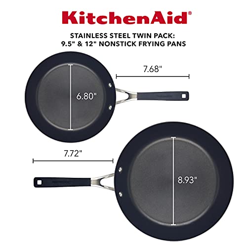 KitchenAid 71023 Stainless Steel Nonstick Frying Pans/Skillet Set, 9.5 Inch and 12 Inch – Brushed Stainless Steel