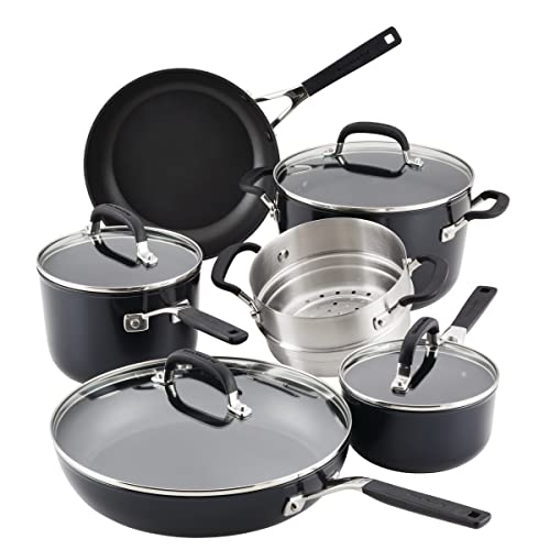 KitchenAid Hard Anodized Nonstick Cookware/Pots and Pans Set, 10 Piece, Matte Black