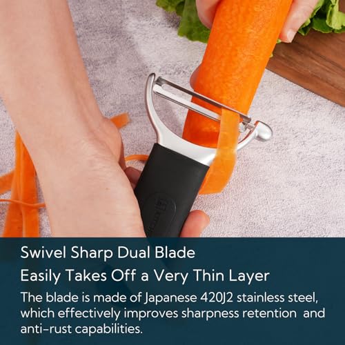 KITCHENDAO Swivel Vegetable Peeler for Kitchen – Japanese 420J2 Stainless Steel Sharp Dual Durable Blade-Built-in Potato Eye Remover, Ergonomic Soft-Touch Handle-Dishwasher Safe-Black