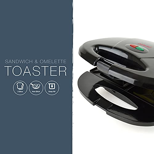 KitchenPerfected 2 Slice Sandwich & Omelette Maker – Non-Stick – Portable – E2605BK – Black