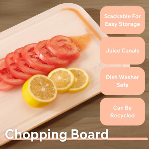 - EFFORTLESS – Lightweight, stackable, and dishwasher-safe cutting boards for easy transport, storage, and hands-free cleaning