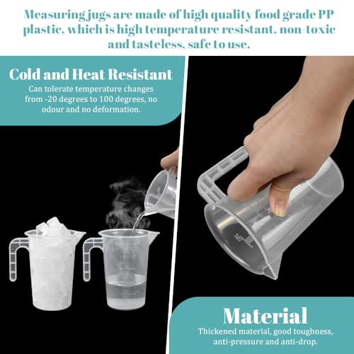 • 【Food Grade Plastic Material】: Made from high-quality food-grade plastic, these measuring jugs are safe to use for food preparation. The plastic material is also lightweight and durable, ensuring long-lasting use.