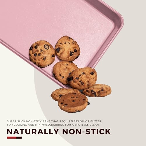 - LONG-LASTING NONSTICK – The interior of each piece has interlocking non-stick layers that are designed to deliver long-lasting, high-performance release and ensure easy food release with zero leftover residues. The tough material of the oven pan set disperses weight and heat evenly throughout the baking process for perfectly made recipes that won't get stuck or caked on.