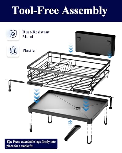 - EASY TO INSTALL & CLEAN: Designed for convenience, this dish drying rack for kitchen counter requires no tools to assemble and has detachable parts for simple cleaning. Its extendable size and compact structure make it suitable for small kitchens, apartments, or family homes. This allows you to set it up quickly, use it daily, and clean it effortlessly while keeping your kitchen tidy and organized.