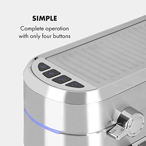 - UNCOMPLICATED: Experience moments of pleasure just like in your favourite café, but comfortably and easily at home: with the Klarstein Futura portafilter machine you can become your own professional barista and enjoy delicious coffee anytime.