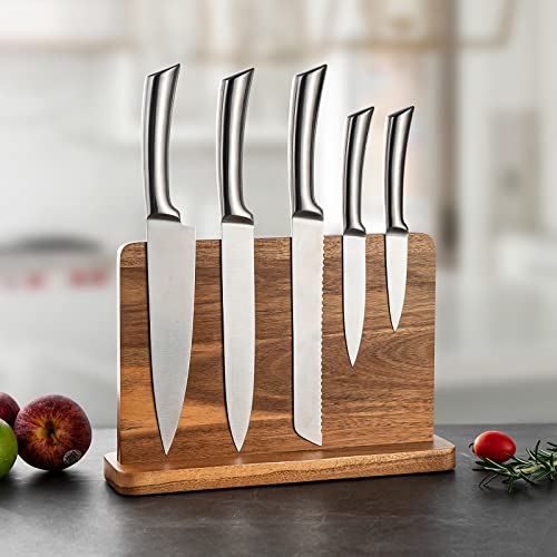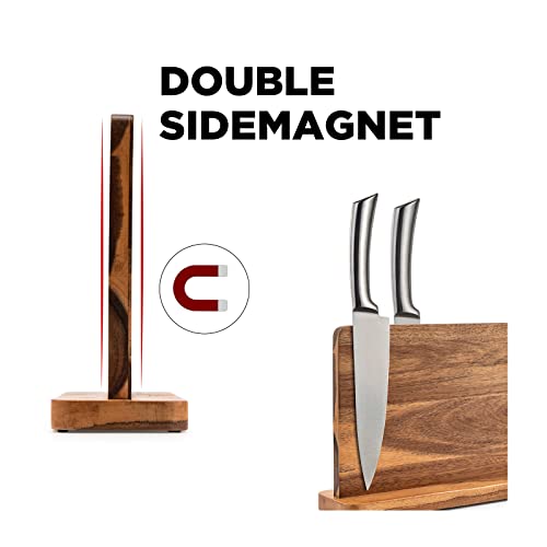 Knife Block Double-Sided Magnetic Knife Holder Multifunctional Wooden Knife Stand with Strong Magnetic Storage Organizer for Kitchen