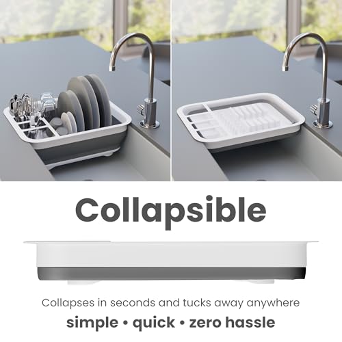 - Collapsible & Space-Saving Design: Easily foldable dish drainer rack optimises valuable kitchen counter space when not in use. Perfect for small kitchens, apartments, caravans, RVs, and camping. Conveniently stores flat for compact storage.