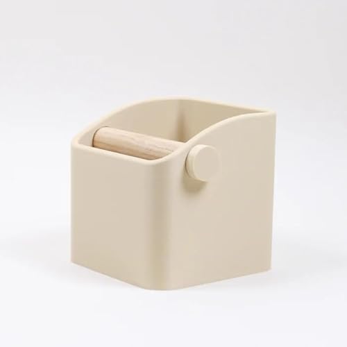 KNOCDIC The Square Knock Box with Oak Knock Bar, Coffee Knock Box, Barista Knock Box, Unique Gift for Coffee Lovers, Strong, Durable, Impact-Resistant, Matte Desert Tan (Oak, Medium)