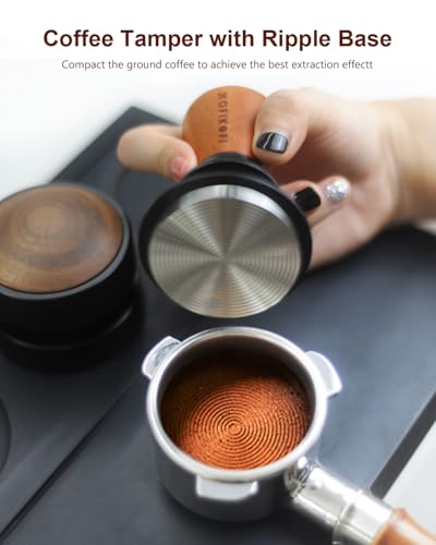 KOFIKOFI 53.3mm Espresso Tamper, Coffee Tamper with Two 30lbs Spring Loaded, Barista Tools Espresso Coffee Tamper with Stainless Steel Ripple Base and Walnut Handle