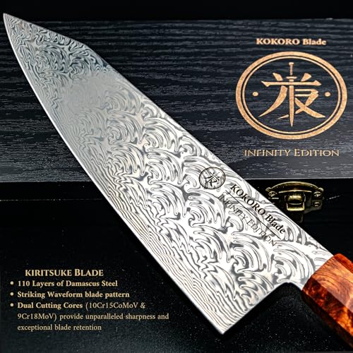 - "GIFT WITH PRESENCE: The Infinity Edition arrives in a black wood box, etched with the KOKORO logo and lined in red — a striking presentation that reflects the quality inside. It’s not just a tool — it’s a statement of precision, dedication, and taste. For weddings, birthdays, or milestone moments, this is the knife you give when only the best will do. KOKORO means heart. Amplify your vibe."