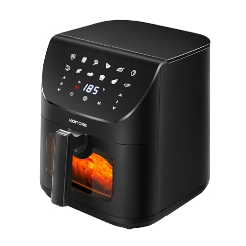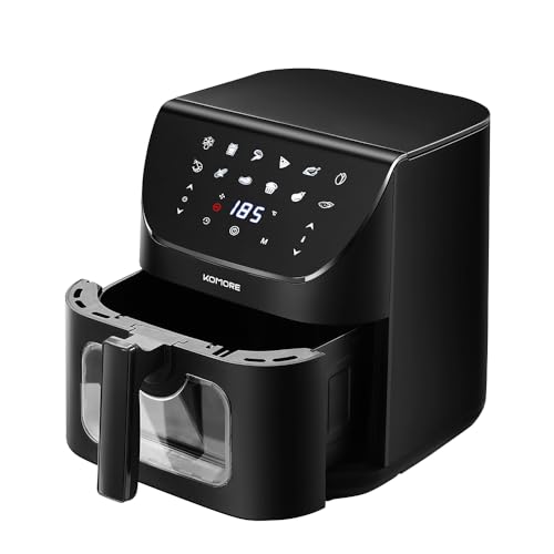 KOMORE Digital Air Fryer with Visual Window 8L, 1700W, 12 in 1 Compact Airfryers with Touchscreen, RapidAir Technology for Extra Crisp, 60mins Timing, Nonstick & Dishwasher Safe, Oil-Free, Black