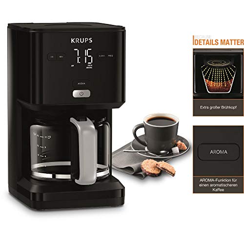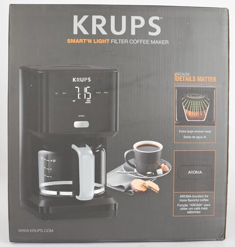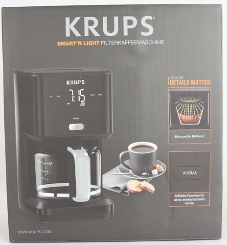 KRUPS KM6008 Smart'n Light Coffee Maker Filter | Intuitive Display | 1.25 Litre Capacity for Up to 15 Cups of Coffee | Automatic Shut-Off Function | Drip Stop | 24 Hour Timer | Black
