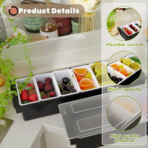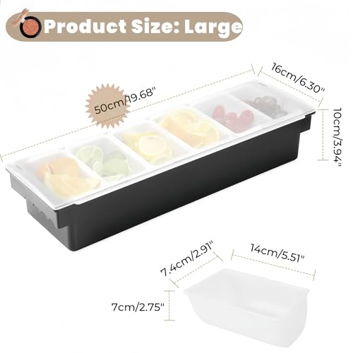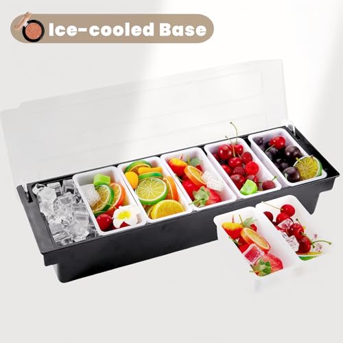 - 🍽️【Versatile 6-Compartment Design】- Keep ingredients neatly separated with 6 removable trays – perfect for pizza toppings, condiments, fruits, and cocktail garnishes. Each compartment lifts out for easy refill and cleaning