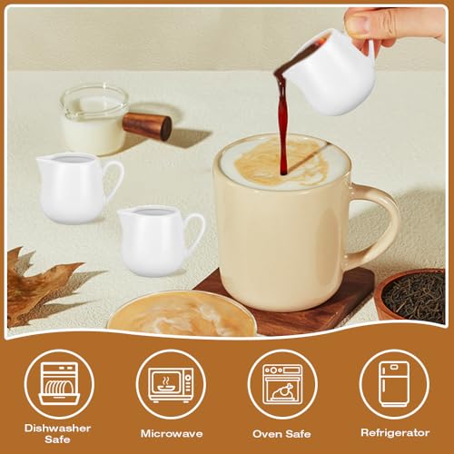 - 【Widely Use】The white small milk jug is a versatile container for a variety of occasions, mini milk jug can be used in cafes, restaurants, parties, afternoon tea, mini milk jugs can be used to hold coffee, milk or tea and heated or refrigerated as needed, small milk jugs can also be used to hold condiments or sauces.