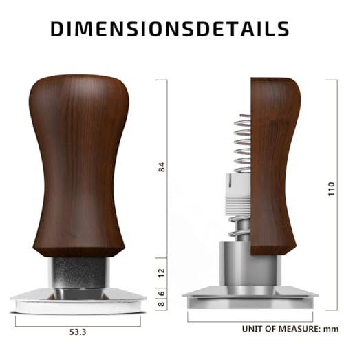 - ☕Calibrated for Perfection – The KYONANO 53.3mm spring-loaded espresso tamper features a unique spring-loaded mechanism, delivering a consistent and stable 30lb pressure when compacting your coffee grounds, eliminating the need for additional adjustments. Whether you're a novice or an experienced barista, the KYONANO espresso tamper is designed to help you achieve the perfect puck every time.