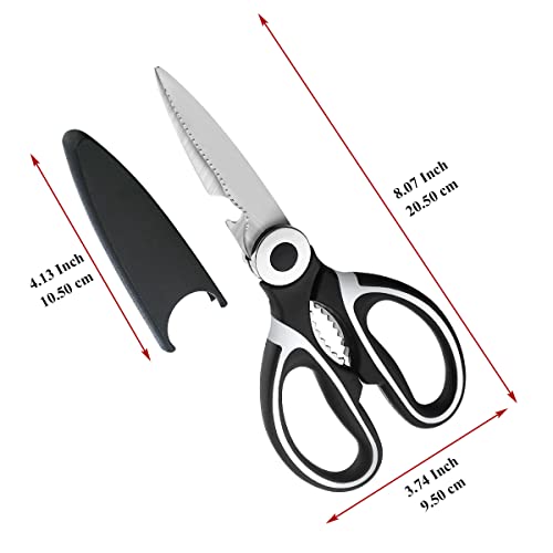 Kyraton Kitchen Scissors Heavy Duty 2 Pieces, Stainless Steel Sharp Cooking Shears with Cover, Multipurpose Cooking Scissors for Meat Chicken Bone Veg Poultry Fish. Dishwasher Safe Food