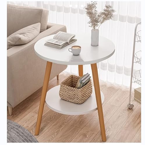 KZOBYD Round Side Table 2 Tier End Tables With Round Wooden Top Bedside Nightstand with Metal Frame Modern Style Sofa Tea Table for Living Room/Bedroom, 38 x 55cm(White)