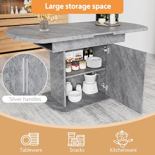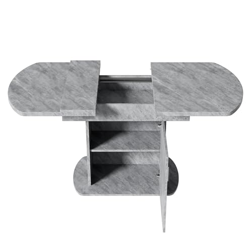 LANTRO JS Extendable Dining Table, 110-130x70cm Space Saving Dining Table with Storage Cabinets, Modern Multifunctional Extending Table, Cement Grey