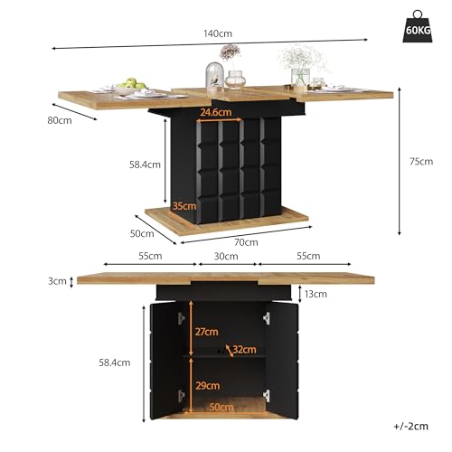 LANTRO JS Extendable Dining Table, Space Saving Folding Kitchen Table with Cabinet Storage, Telescopic Dining Table for 4-6 people, 110-140x80cm