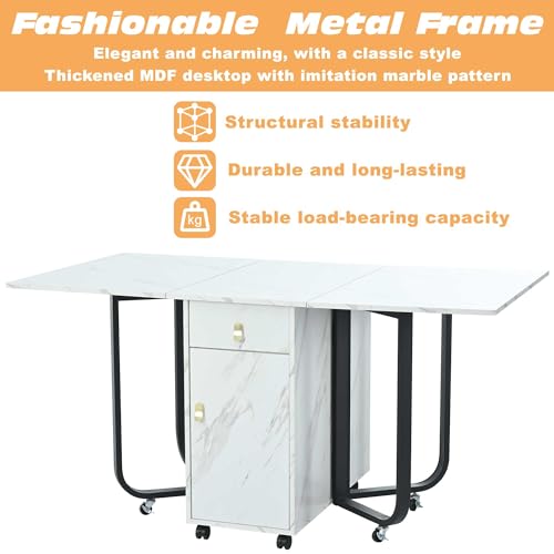 - Versatile Extending Dining Table with Floor Protection: Our innovative extending dining table features adjustable legs with protective casters to prevent floor scratches. The fold away dining table design includes three customizable configurations, making it more adaptable than traditional kitchen table options. Its marble-finish surface resists stains while maintaining elegant appeal.