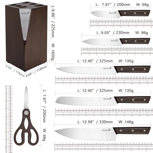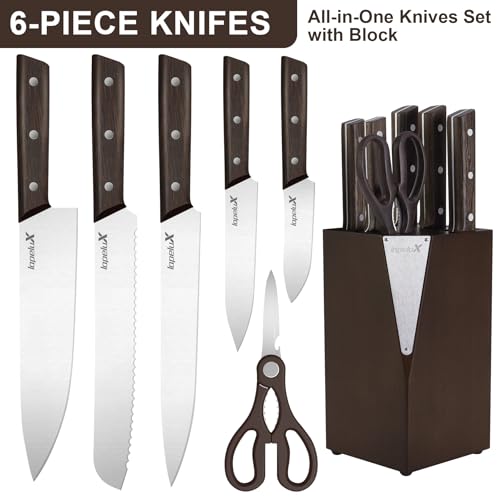 lapelux Knife Set – 6 Piece Kitchen Knives –Kitchen Knife Set with Knife Block, Natural Wood, Sharp Stainless Steel Blades for Cutting Meat/Bread/Vegetables/Fruit.