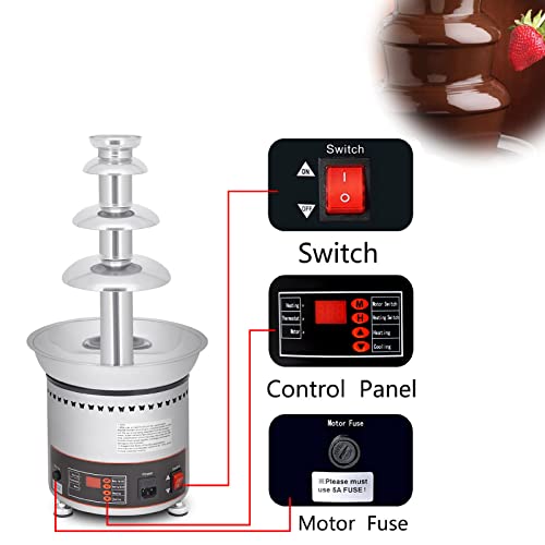 - ★ Easy to Use: The Chocolate Fondue Fountain has temperature control button, heating button and motor button, just simple operation. Manual temperature control and a stable heating system protect the chocolate from changing taste and composition.