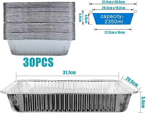 LATERN 30Pcs Aluminium Foil Baking Trays, 31 x 21 x 5cm Disposable Roasting Trays Oven Freezer Safe Cooking Baking Broiling Pans for Party Food Serving Takeaway Storage Catering Containers