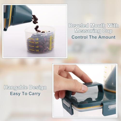 - 【Convenient Design】The airtight cereal container is designed with beveled mouth with measuring cup, allowing you to control the amount easily and precisely when pouring. The rice food storage with handle is easy to carry, convenient to pick up.
