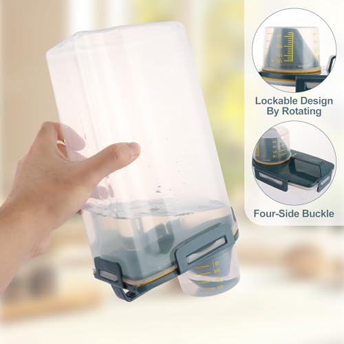 - 【Good Sealing】The rice container dispenser provides good sealing effects, preventing moisture from entering. The lockable design on the measuring cup allows you to rotate for opening. The four-side buckle of food dispenser lid prevents items from leaking.