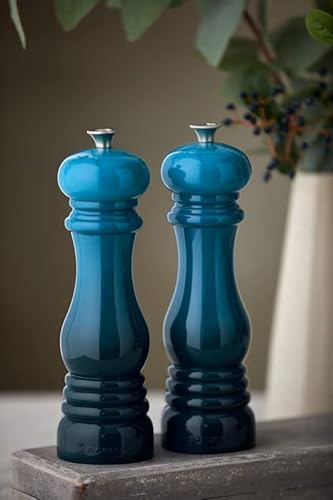 - Contents: 1x Le Creuset Classic Pepper Mill Grinder, 1 x Care and Use Booklet, Weight: 28g, Dimensions: 6.2 x 6.2 x 20.8 cm, Colour: Deep Teal, 96001900642000