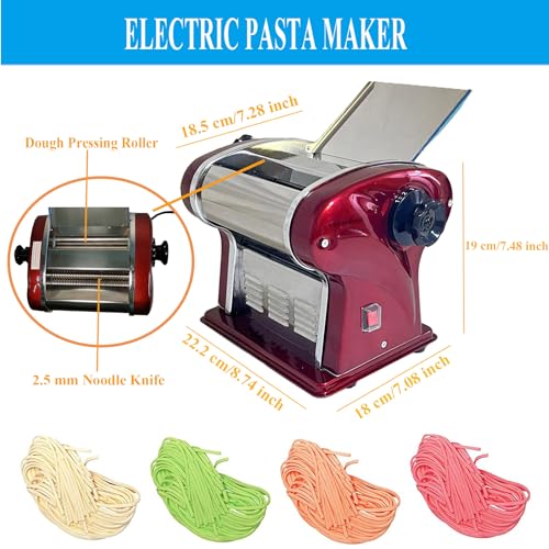 LEONEBEBE Electric Pasta Maker, 135W Noodle Making Machine with 2.5mm Stainless Steel Blade, 6 Thickness Settings for Homemade & Commercial Use, Compact Design, 5kg/h Output (Red)