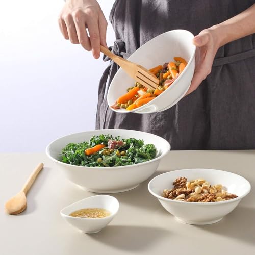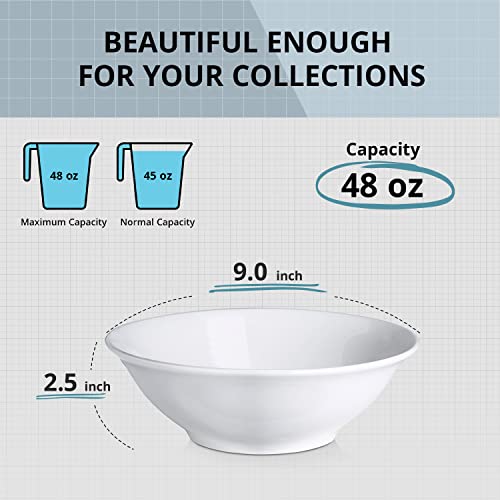 LIFVER Large Serving Bowl, 48oz/1300ml White Porcelain Salad Bowls Set of 4 for Pasta, Cereal, Soup, Dessert, Ramen, Pho, Fruit, Microwave & Dishwasher Safe, 9" x 9" x 2.5"