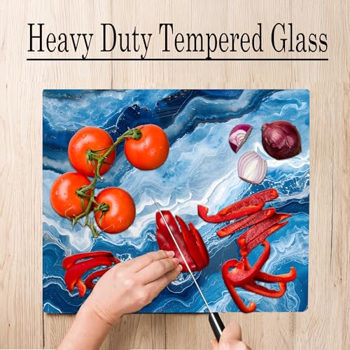 Light Dark Blue With White Marble Kitchen Glass Cutting Board Ocean Decorative Gift Marbled Granite Stone Rock Gift For Her Mom Wife (Marble)