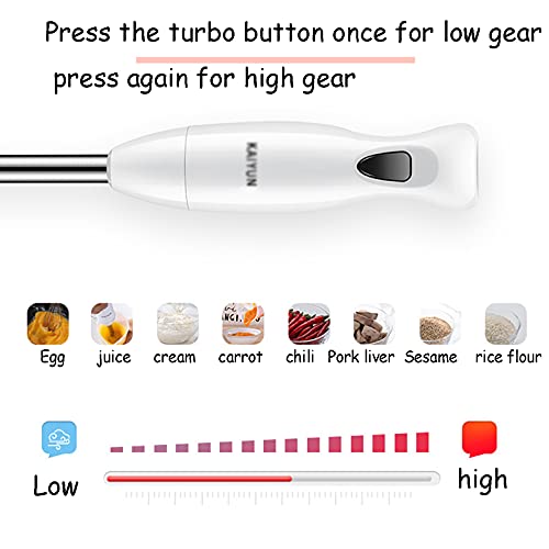 - Multi-function: Multi-function handheld mixer set-including mixing shaft, whisk and beaker. Very suitable for mixing, grinding, mixing, whipping, mashing and more! This hand blender can be easily stored when not in use.